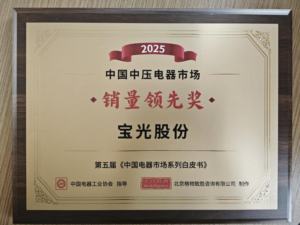 102025-07榮譽時刻||寶光股份榮獲2025年度中國中壓電器市場...近日,由中國電器工業協會指導,中電協理事單位主辦的《2025年中國電器市場系列白皮書》發布會在上海隆重舉行。會議表彰在市場占有率、...